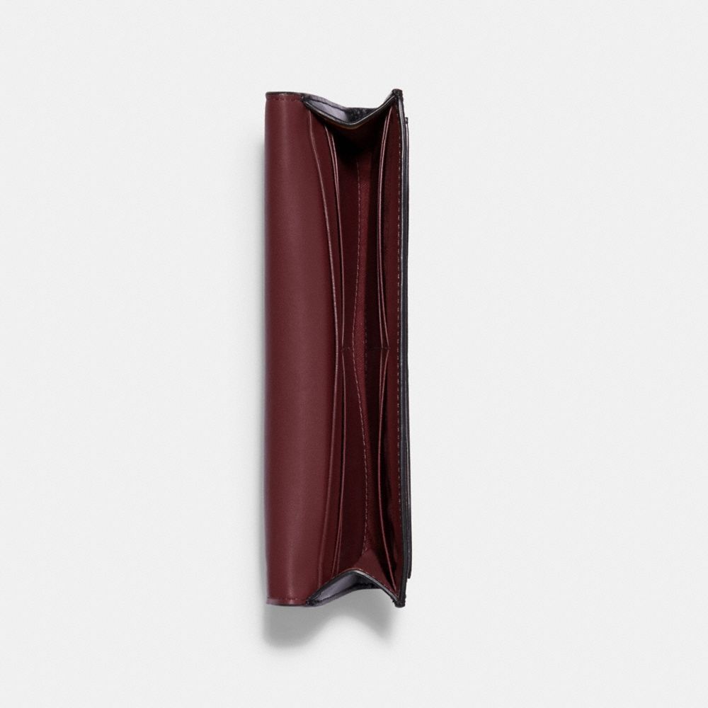 Printed coated canvas and smooth leather| Eight credit card slots| Full-length bill compartment| Zip coin pocket| Snap closure| Outside zip coin pocket| 7 3/4" (L) x 3 1/2" (H)
