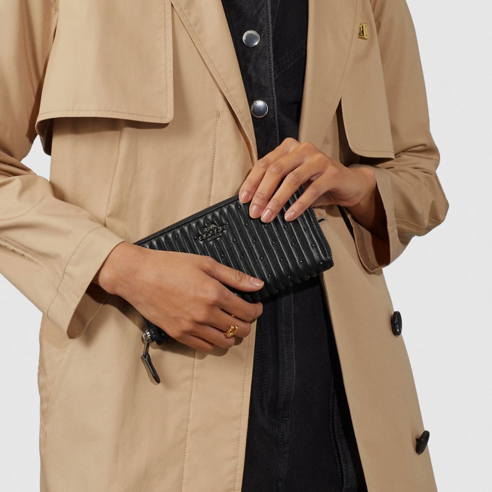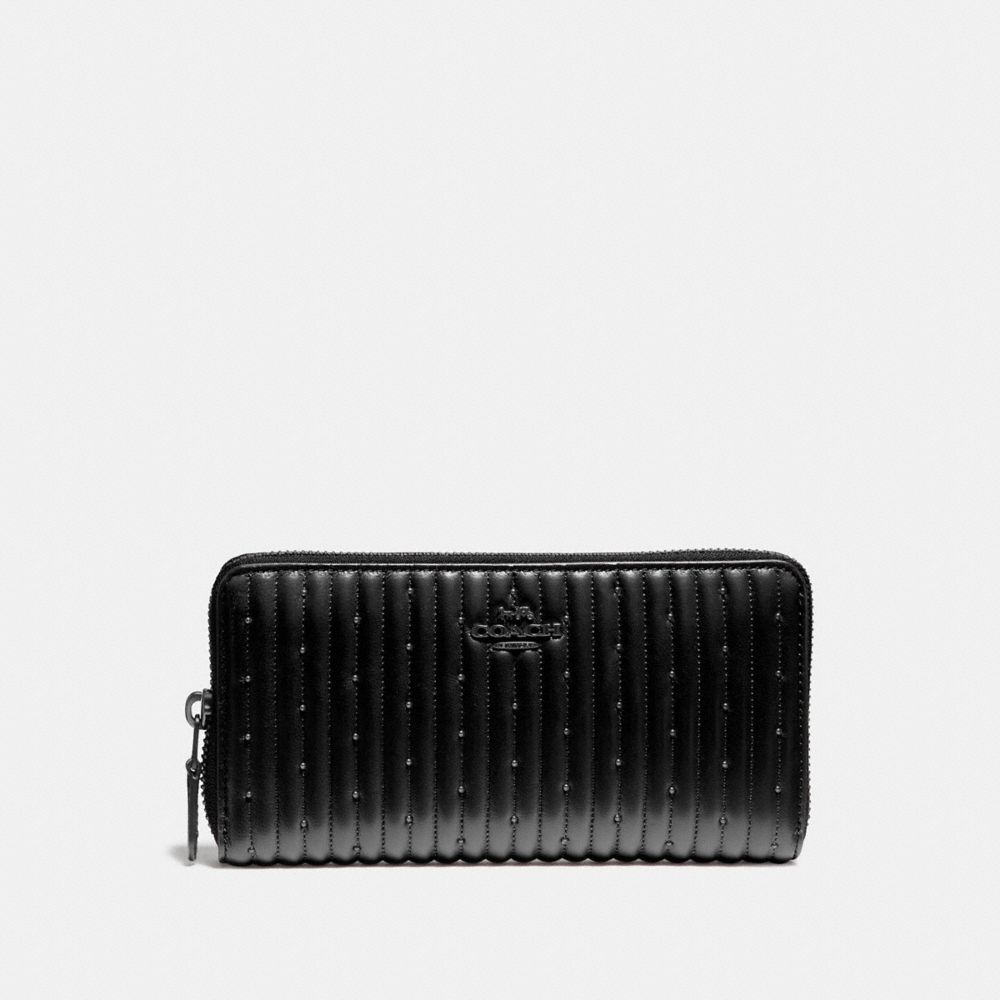 ACCORDION ZIP WALLET WITH QUILTING AND RIVETS