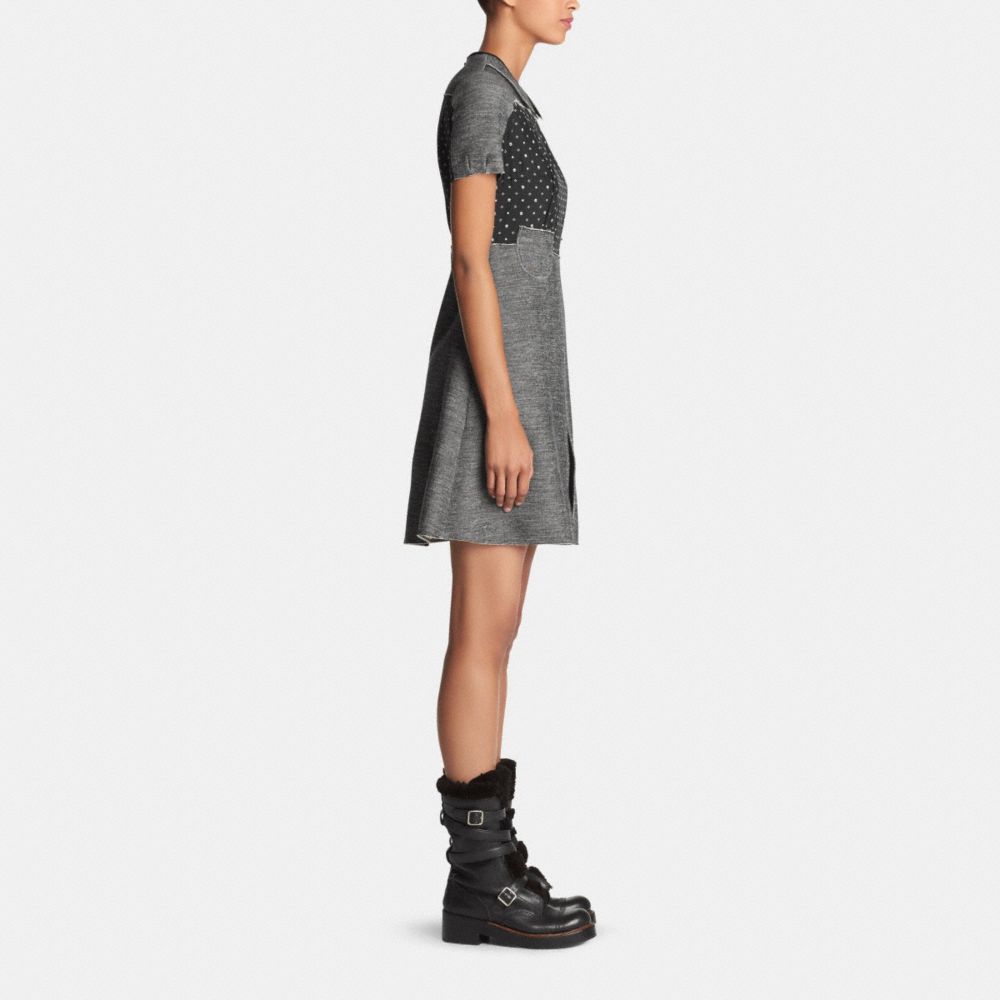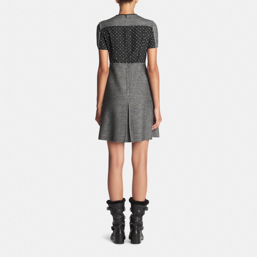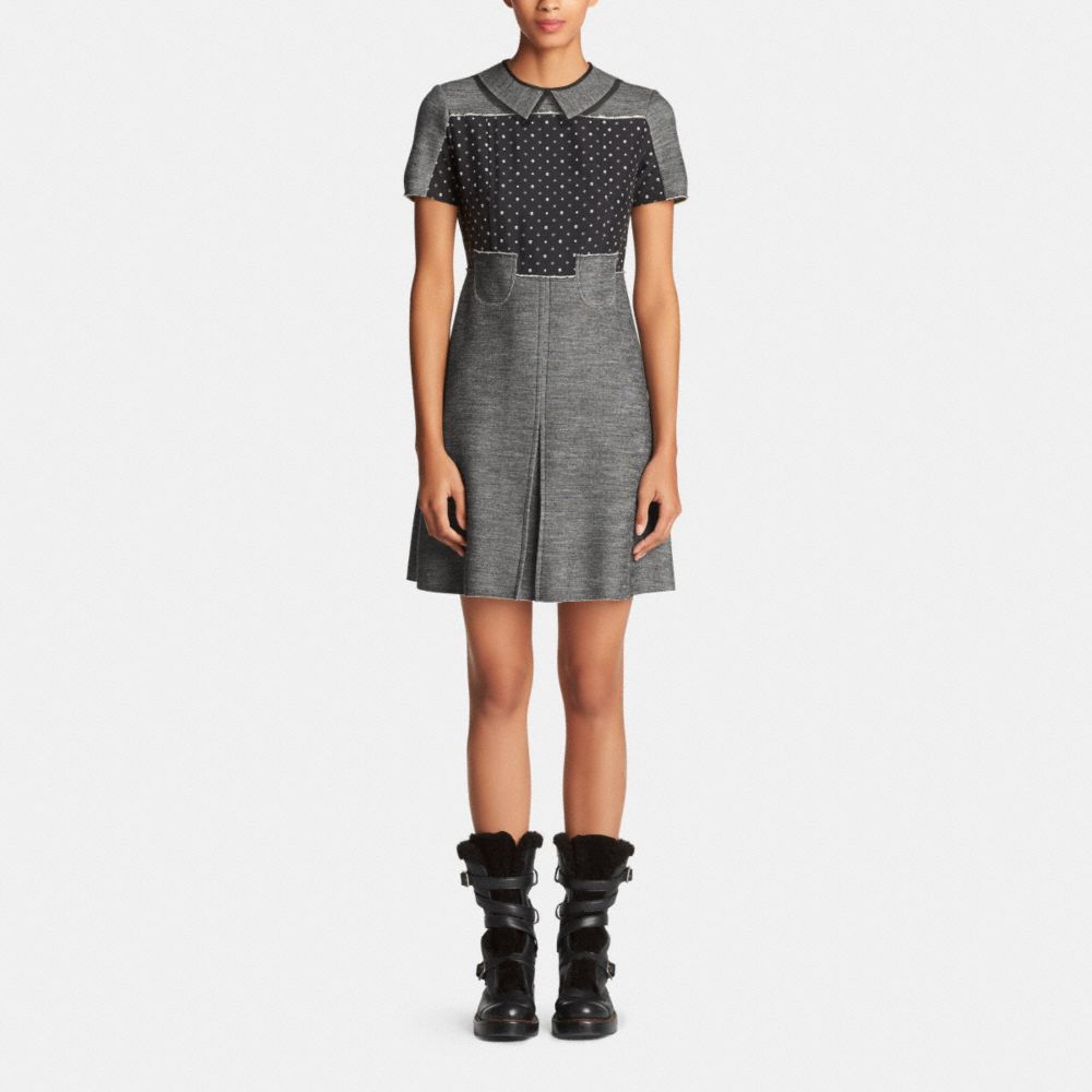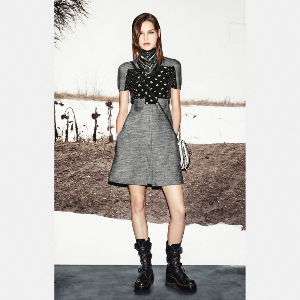 Woven silk, woven viscose and wool-cotton knit Two patch pockets Two hidden on-seam pockets Fall 2015 collection