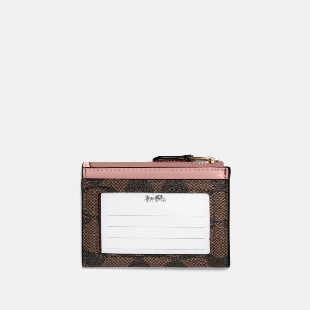 Signature coated canvas and smooth leather| Two credit card slots| ID window| Zip-top closure, fabric lining| Attached split key ring| 4 1/4" (L) x 3" (H) x 1/2" (W)Style No. 88208