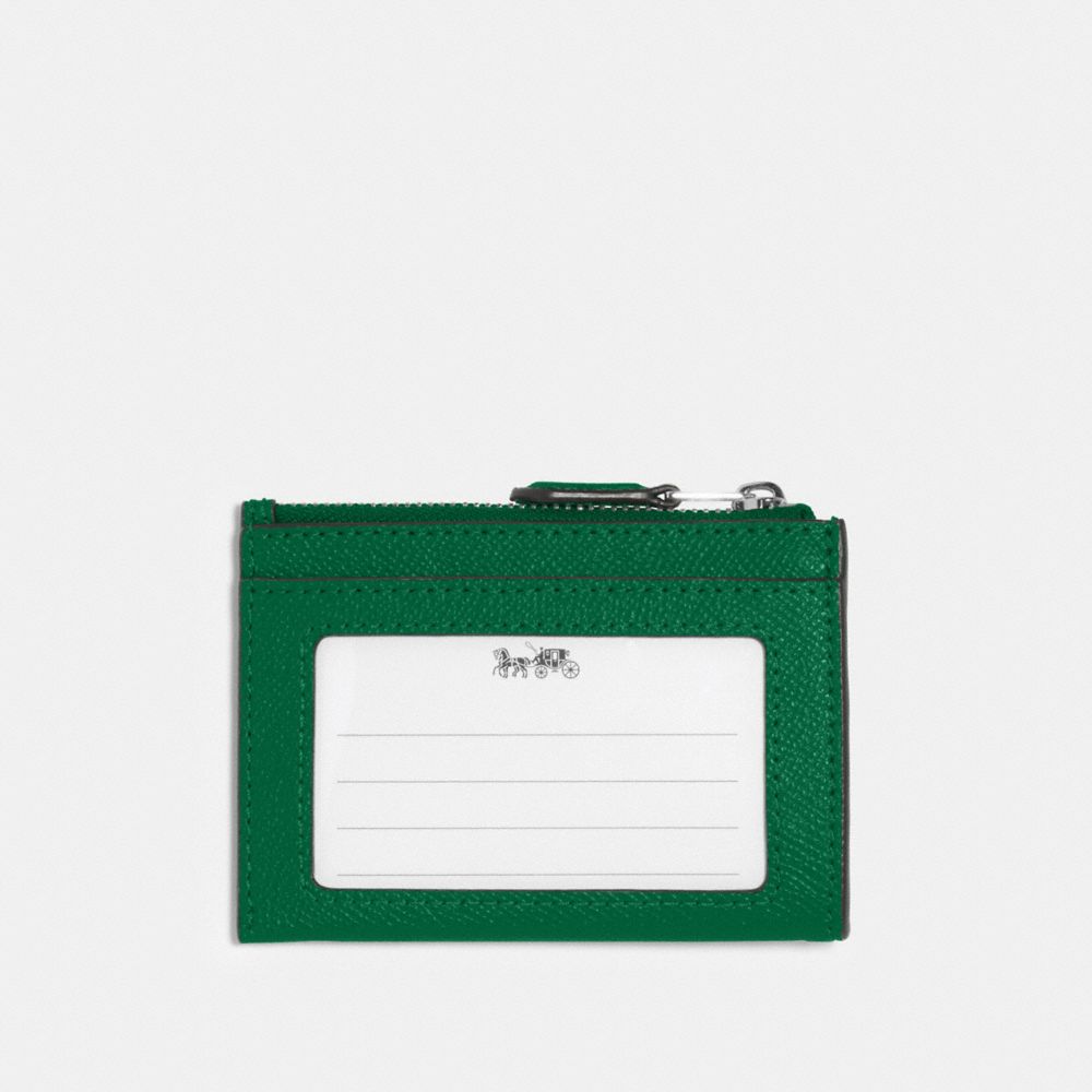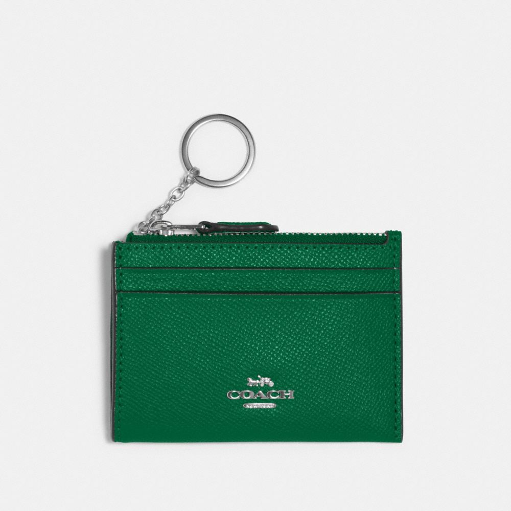 Crossgrain leather| Two credit card slots| ID window| Zip-top closure, fabric lining| Attached split key ring| 4 1/4" (L) x 3" (H) x 1/2" (W)Style No. 88250