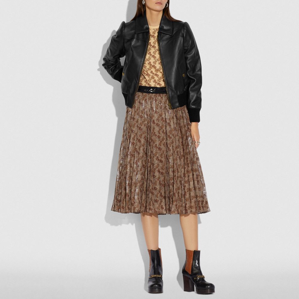 100% lamb leather| Lining: 100% viscose| Zip closure| Snap pockets| Length: 20"| Clean by leather specialist | Model is 5'10" (178cm), chest 31" (79cm), waist 24" (61cm), hips 35" (89cm) and wears a size 2