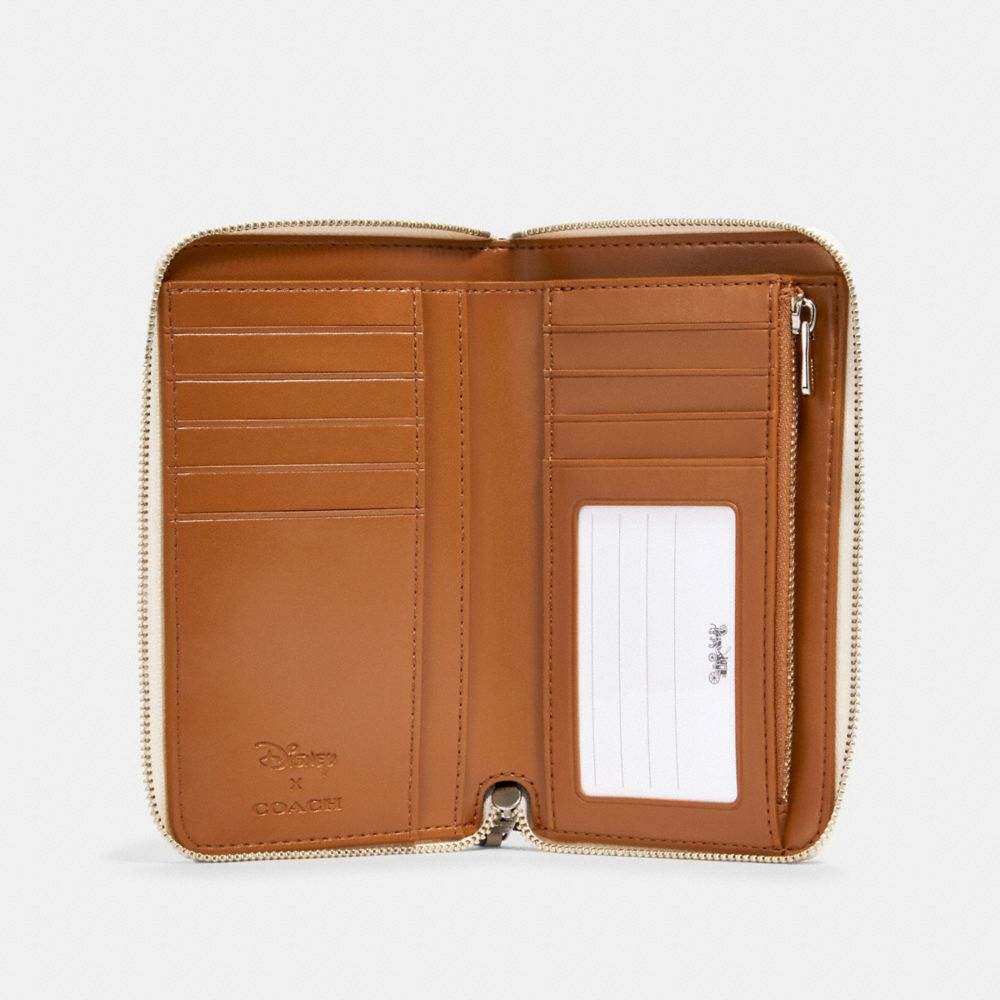 Refined pebble leather| Nine credit card slots| Bill compartments| ID window| Zip coin pocket| Zip-around closure| 6 1/2" (L) x 3 3/4" (H) x 3/4" (W)| Disney x Coach| ©Disney