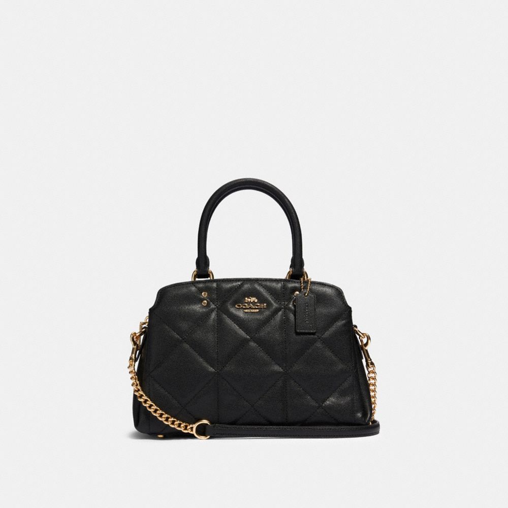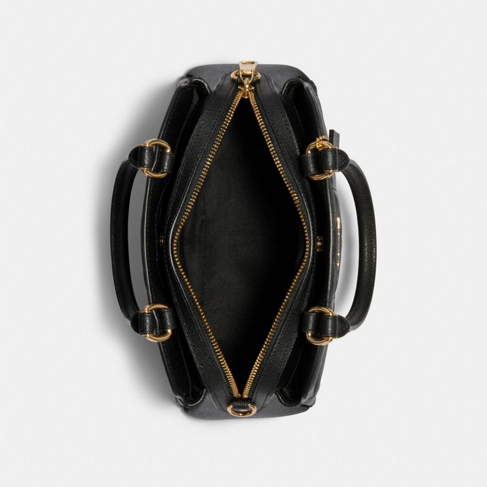 Grain leather| Center zip compartment| Snap closure, fabric lining| Handles with 4 1/4" drop| Outside open pocket| Detachable strap with 21 1/2" drop for shoulder or crossbody wear| 10 1/4" (L) x 6 3/4" (H) x 4 1/4" (W)