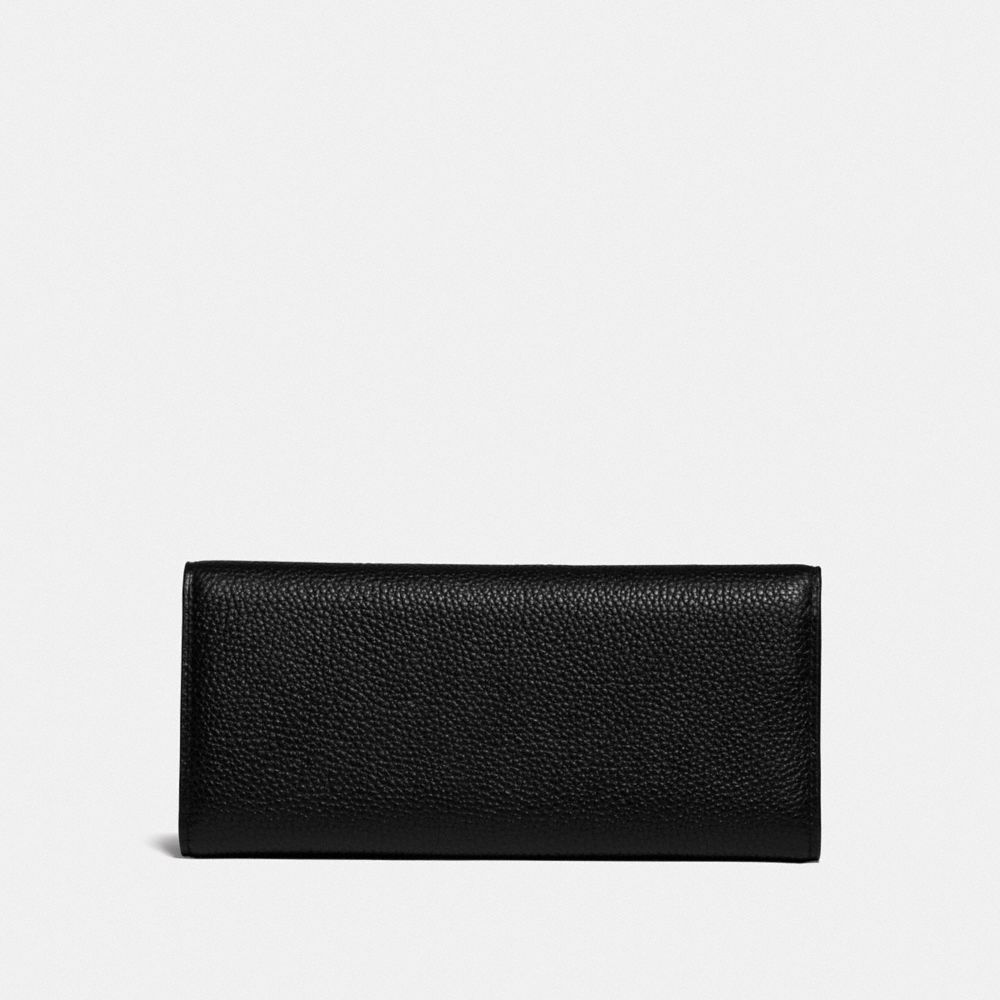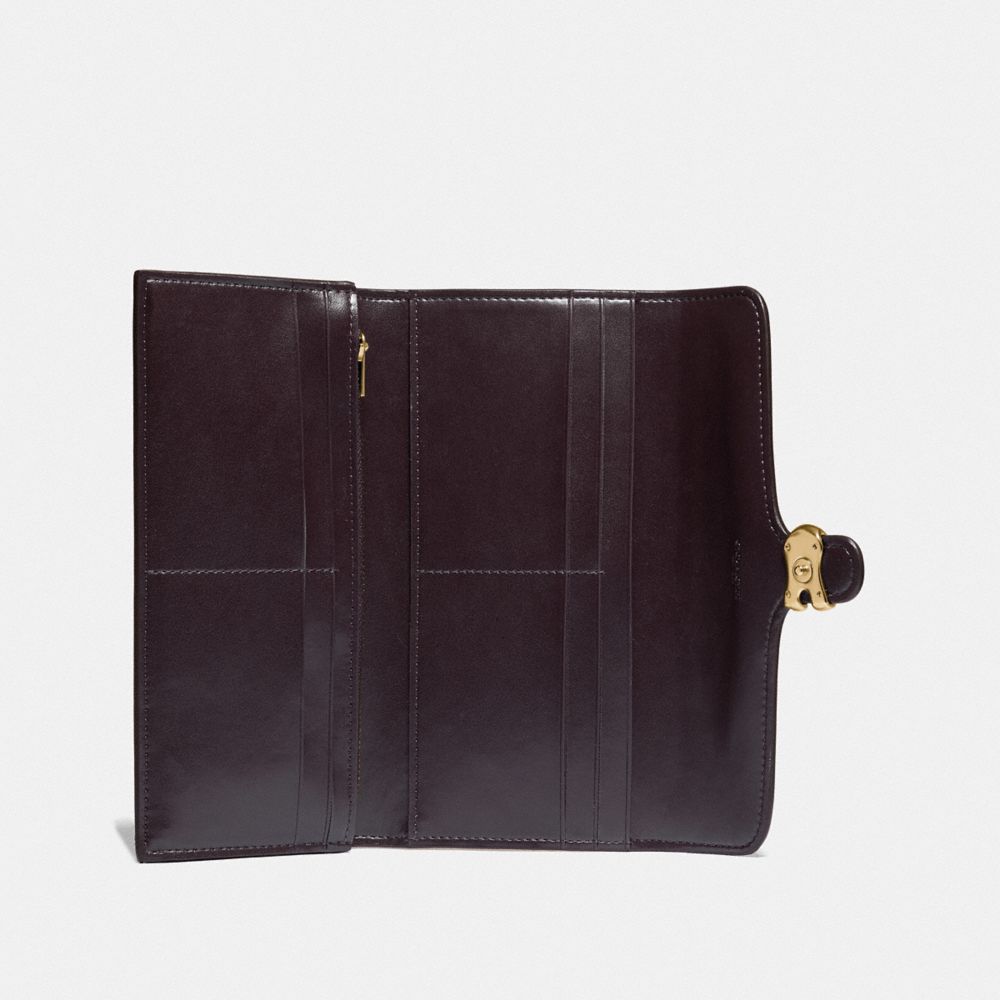 Polished pebble leather| Eight credit card slots| Inside zip and open pockets| Snap closure| Outside slip pocket| 7 3/4" (L) x 3 3/4" (H)