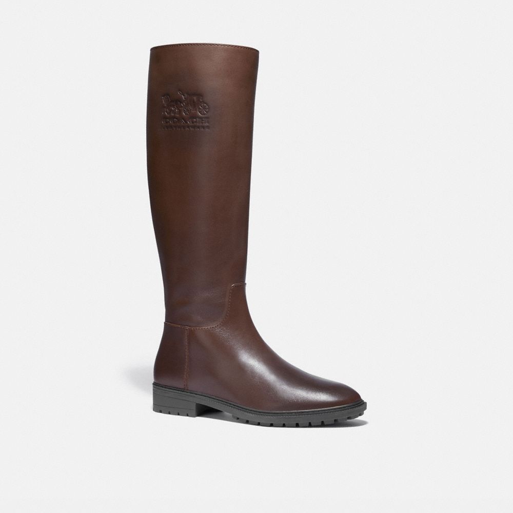 Leather upper| Fabric and man-made leather lining| Rubber outsole| Zip closure| Shaft: 14 3/4" height, 15 1/4" circumference| 3/4" heel