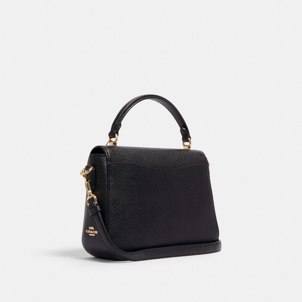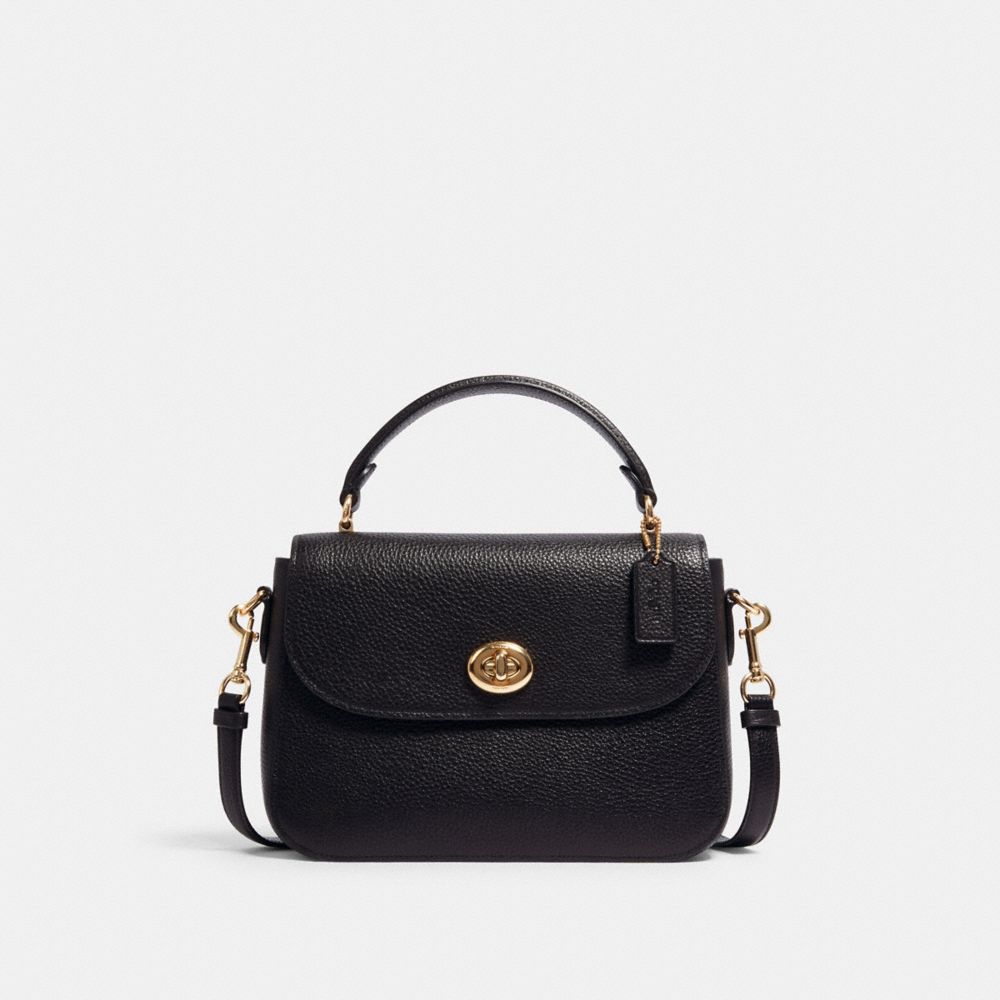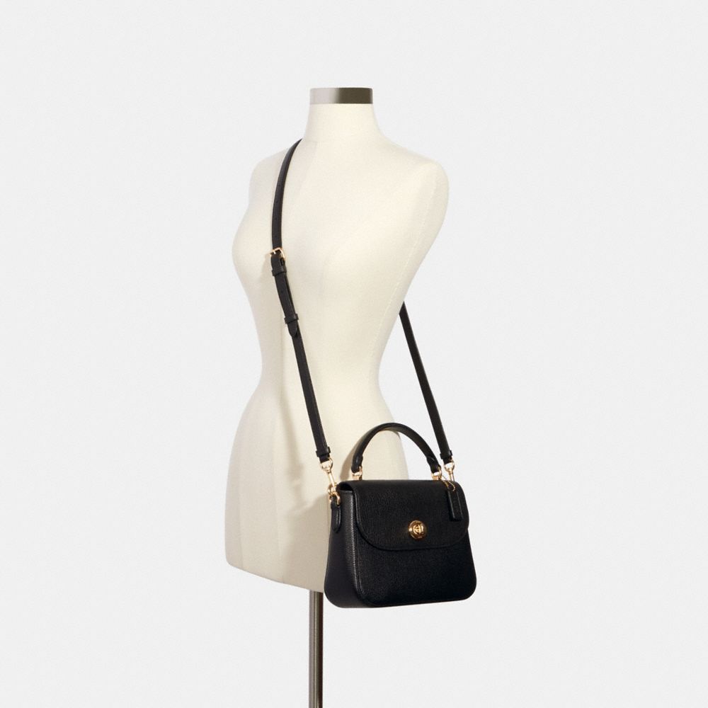 Refined pebble leather| Inside zip and multifunction pockets| Turnlock closure, fabric lining| Top handle with 3 1/2" drop| Outside open pocket| Detachable strap with 22" drop for shoulder or crossbody wear| 9 1/2" (L) x 7" (H) x 2 3/4" (W)