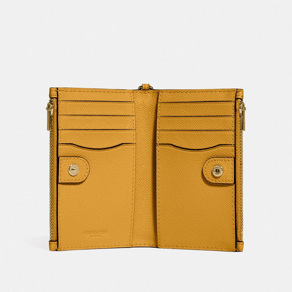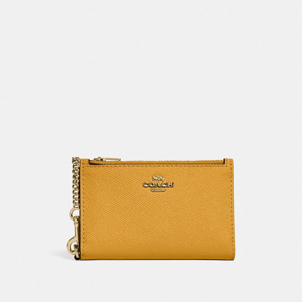 Crossgrain leather| Eight credit card slots| Inside open pockets| Snap closure| Outside zip pockets| Detachable chain strap with dogleash clip| 5 1/4" (L) x 3 1/4" (H)Style No. C2644