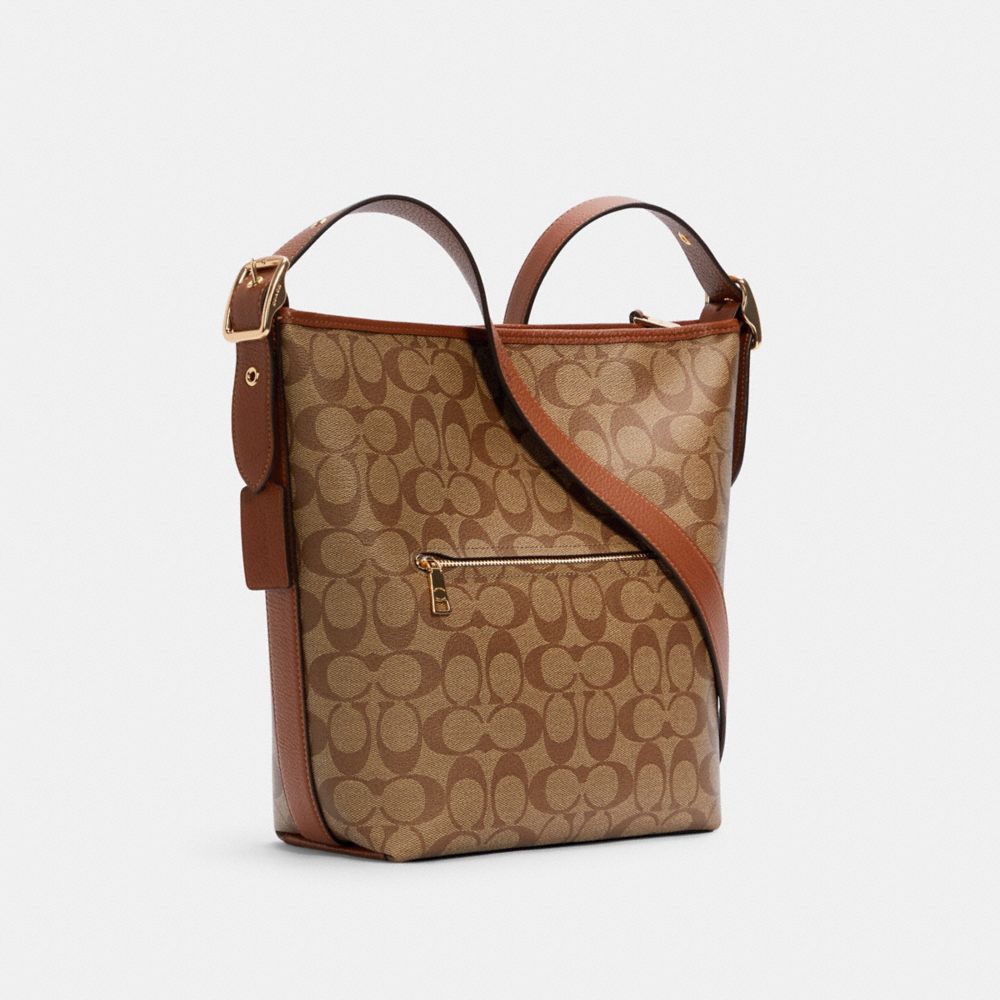 Signature coated canvas and refined pebble leather| Inside zip, cell phone and multifunction pockets| Zip-top closure, fabric lining| Outside zip pocket| Adjustable strap with 21" drop for shoulder or crossbody wear| 9" (L) x 11 1/4" (H) x 1/2" (W)