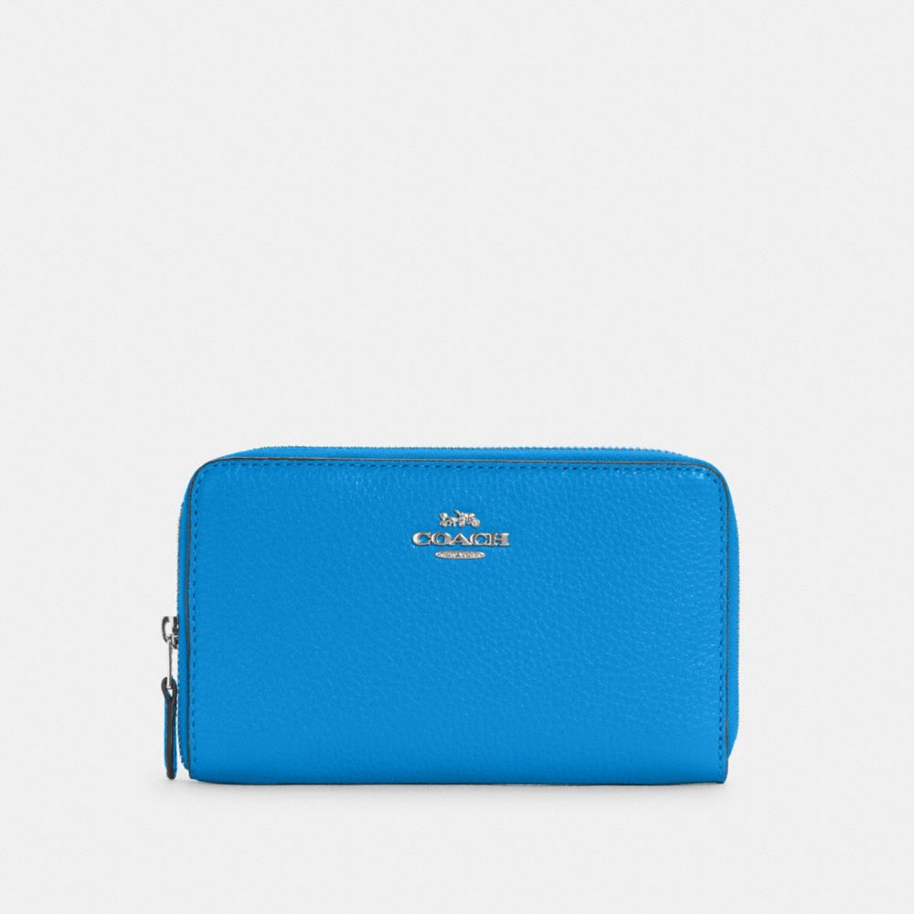 Refined pebble leather| Nine credit card slots| Bill compartments| ID window| Zip coin pocket| Zip-around closure| 6 1/2" (L) x 3 3/4" (H) x 3/4" (W)