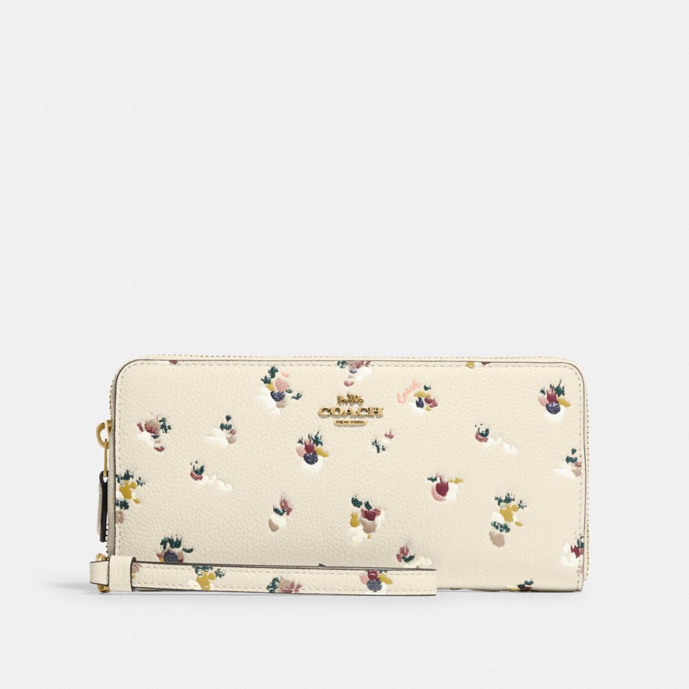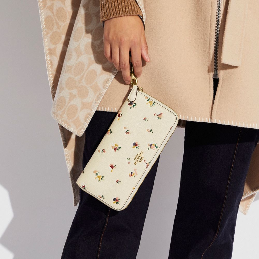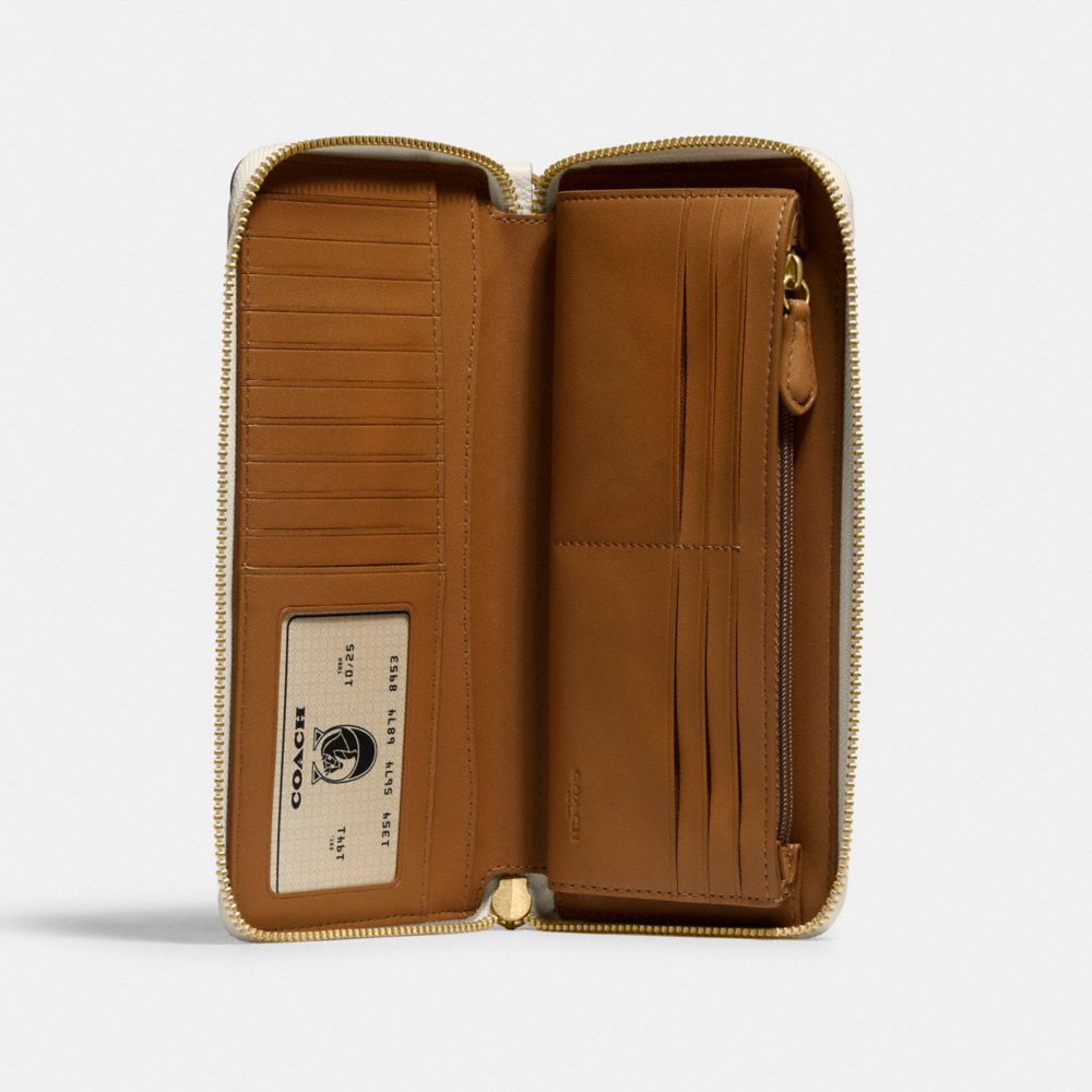 Polished pebble leather| Sixteen credit card slots| ID window| Full-length bill compartments| Inside zip coin pocket| Zip-around closure| Detachable wrist strap| 8 1/4" (L) x 4" (H) x 1" (W)| Fits all phone sizes up to an iPhone X and Samsung S7 EdgeStyle No. C5876