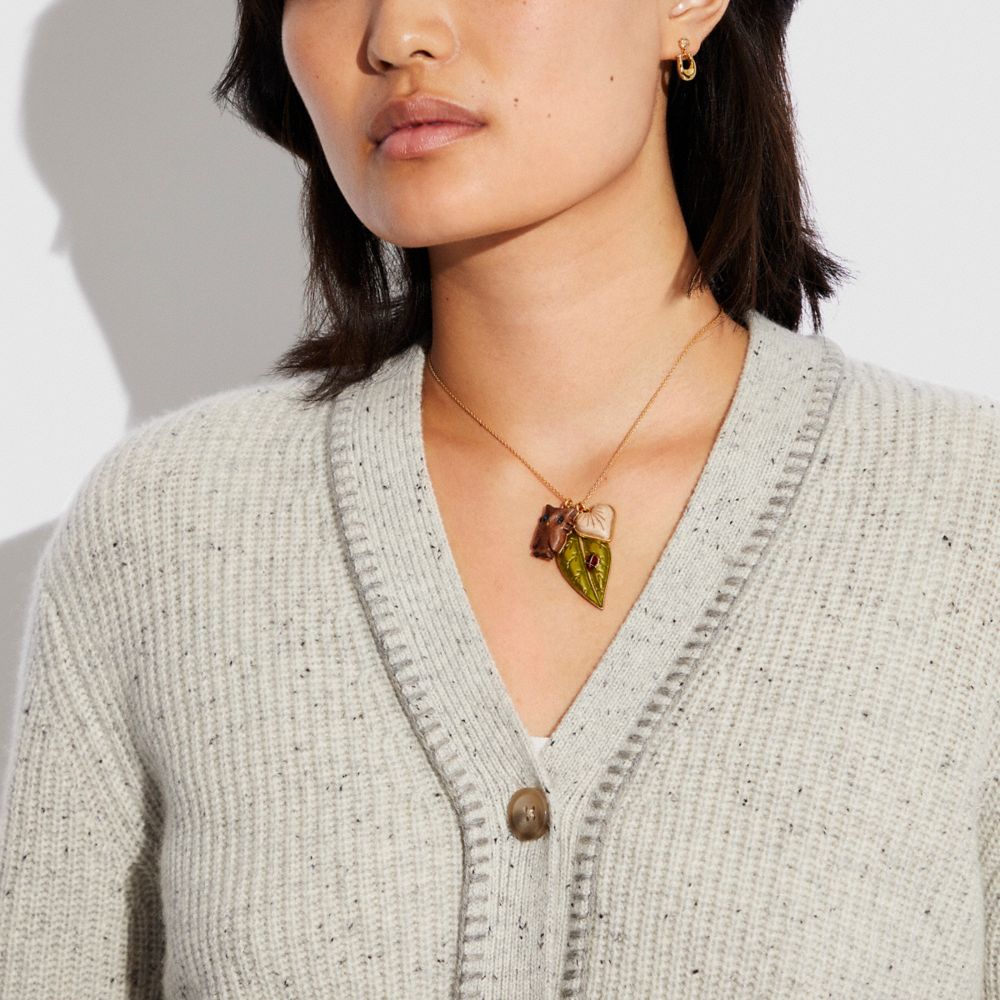 Wood, enamel and plated brass| Lobster clasp closure| Adjustable 16" - 18" (L)Style No. C6792