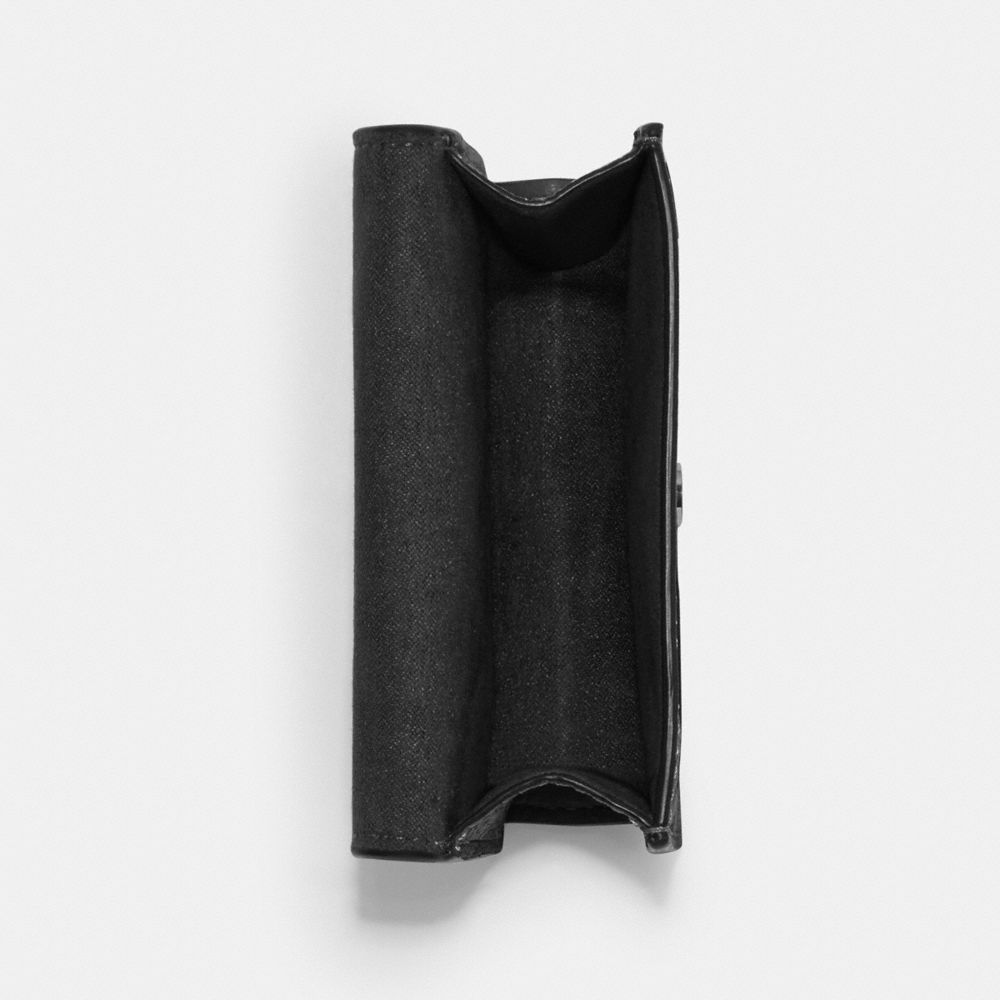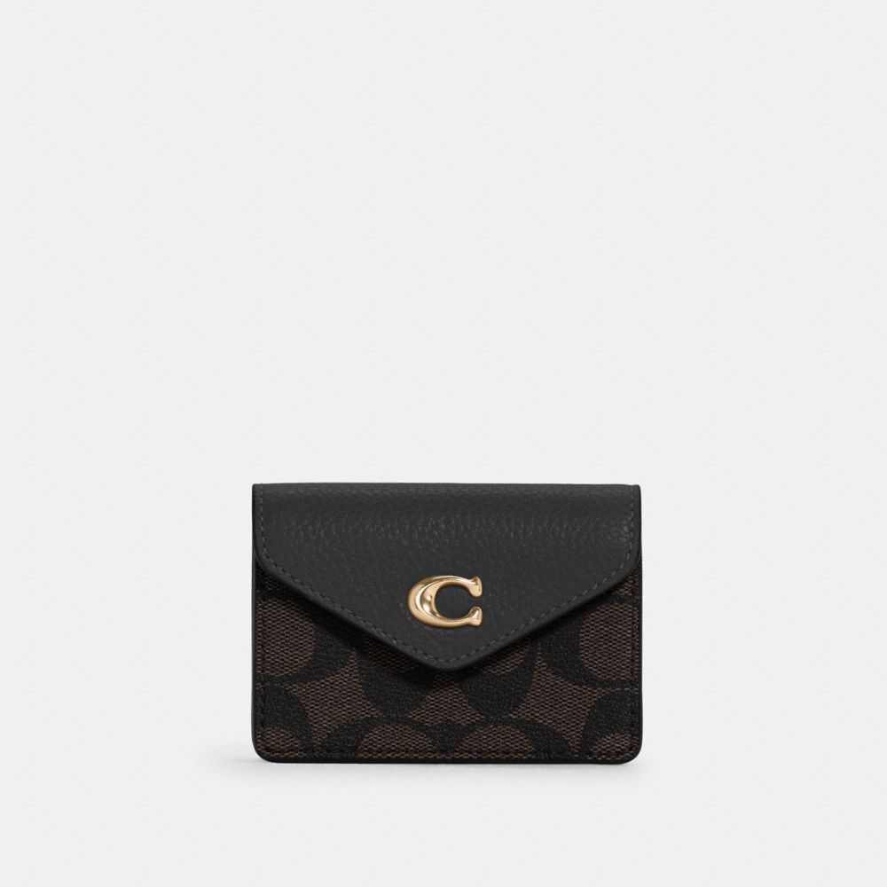 Signature coated canvas and refined pebble leather| One credit card slot| Snap closure| Outside slip pocket| 4" (L) x 3" (H) x 1 1/4" (W)Style No. C6889