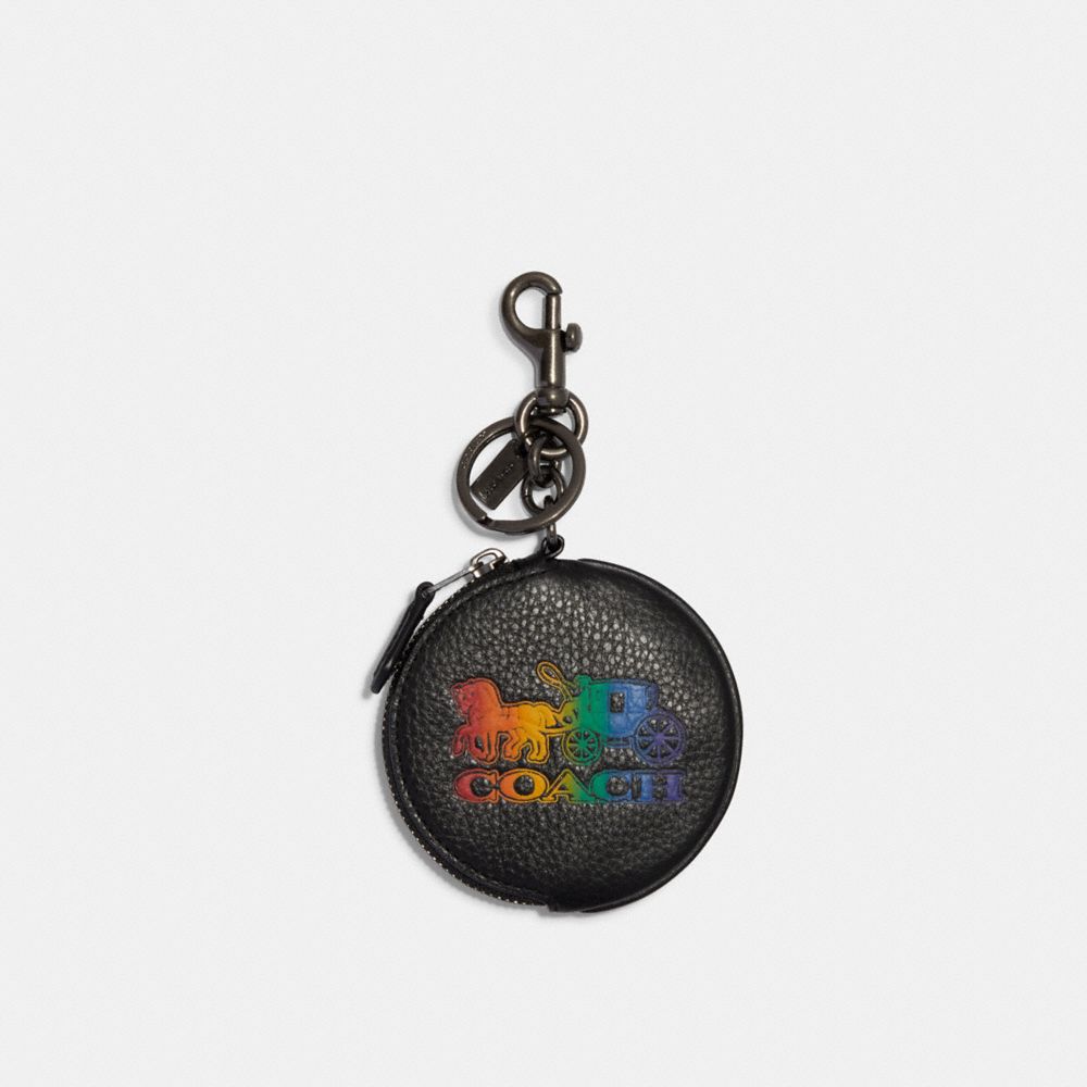 Refined pebble leather| Zip closure| Attached split key ring and dogleash clip| 3 1/2" (L) x 3 1/2" (H)Style No. C6947
