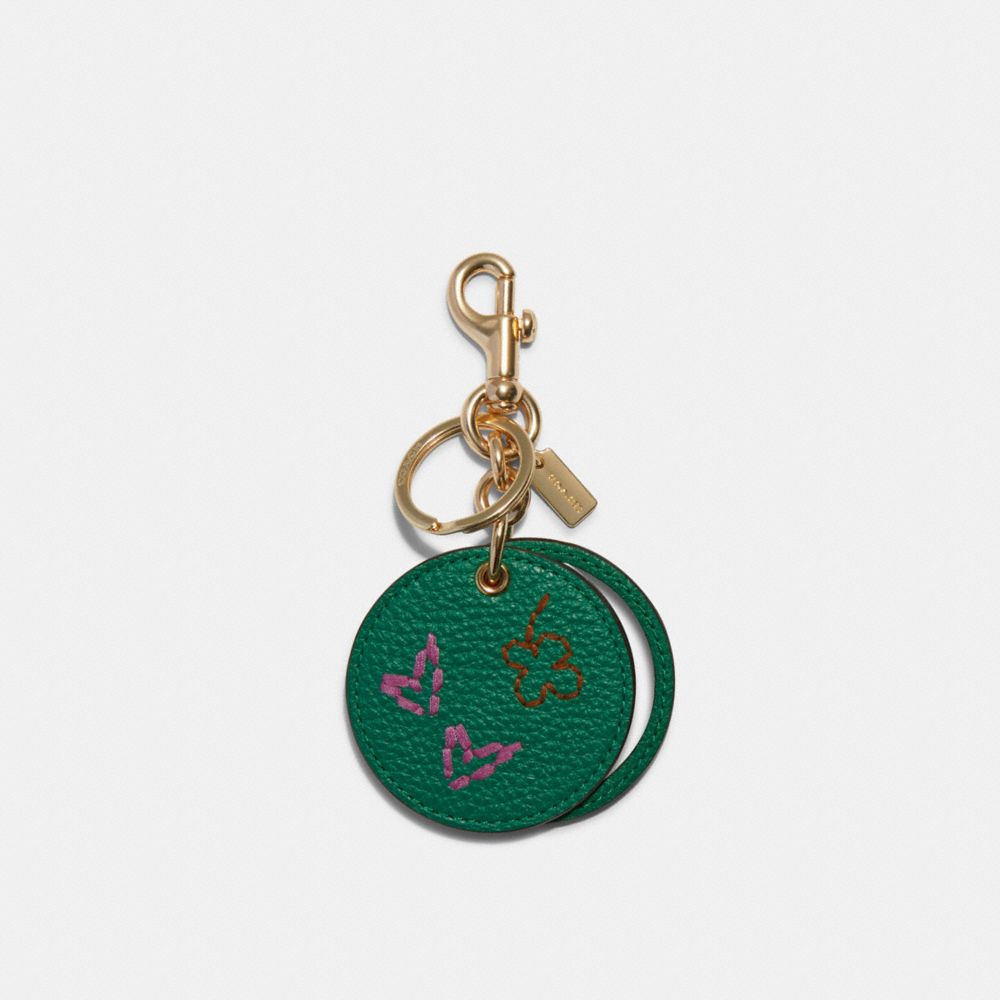 Refined pebble leather| Attached split key ring and dogleash clip| 2 1/2" (L) x 2 1/2" (H) x 1/2" (W)Style No. C7754