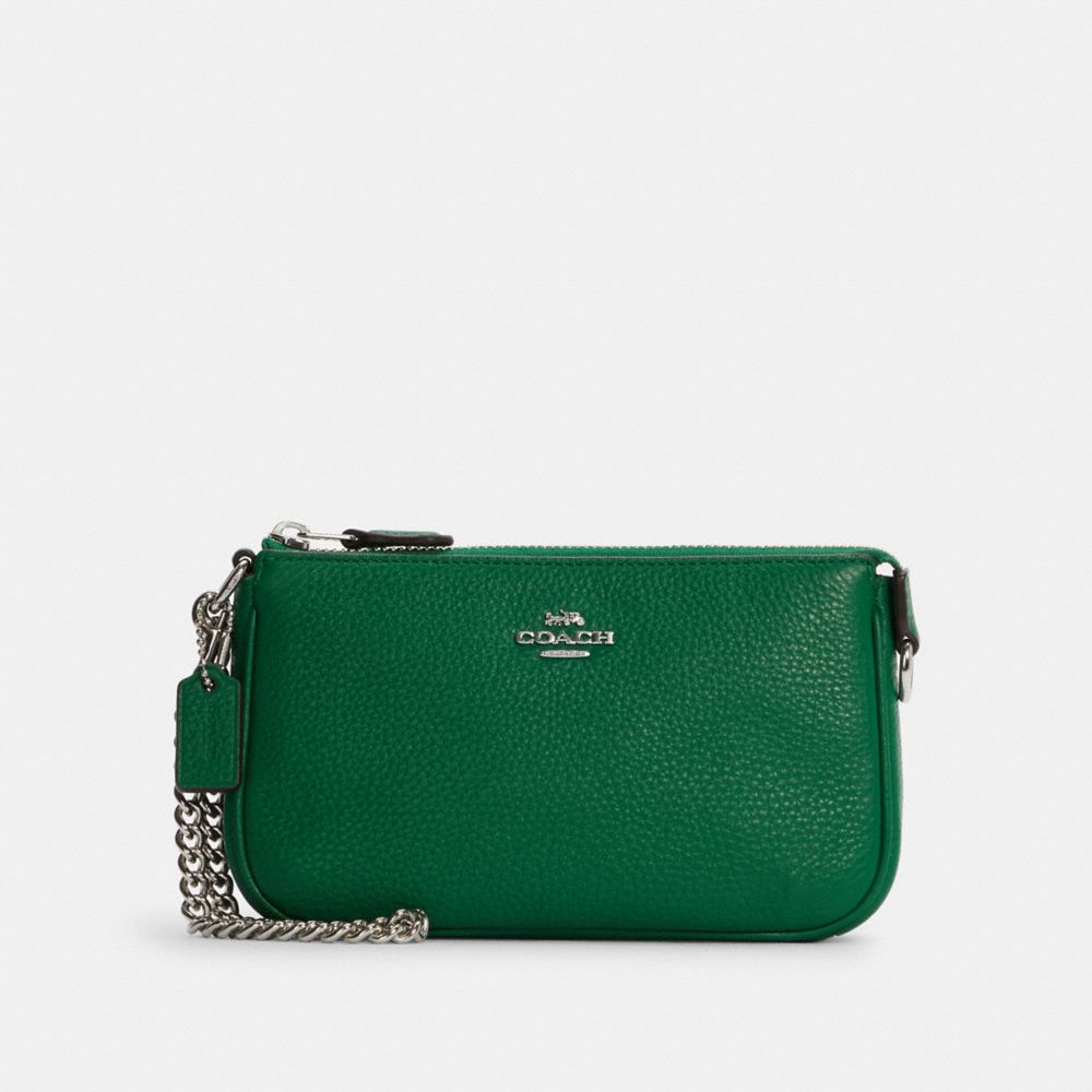 Refined pebble leather| Two credit card slots| Inside multifunction pocket| Zip-top closure, fabric lining| Chain handle with 6 1/4" drop| 7 1/2" (L) x 4 1/2" (H) x 2" (W)Style No. C8303