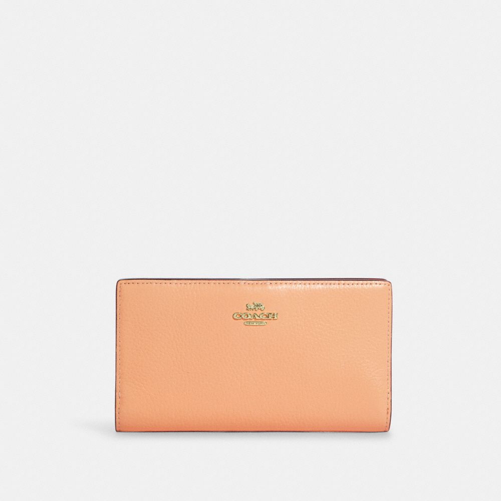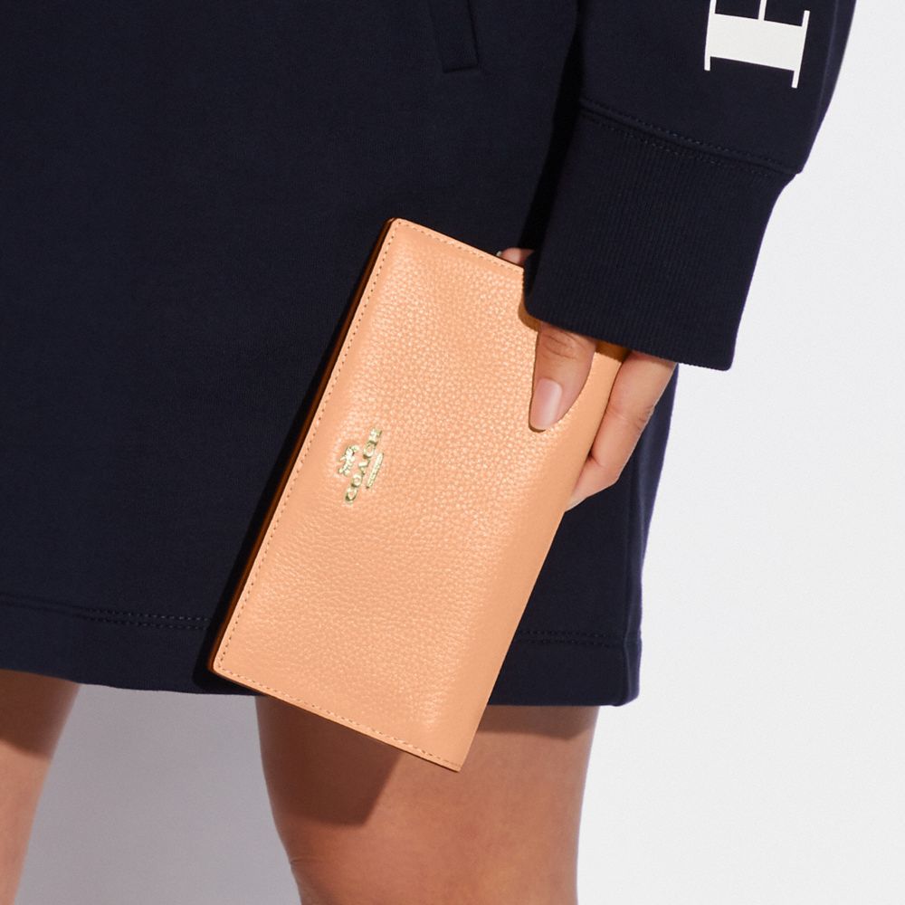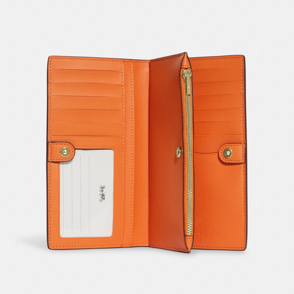 Refined pebble leather| Twelve credit card slots| ID window| Inside open pockets| Zip coin pocket| Snap closure| 7" (L) x 3 3/4" (H)Style No. C8329