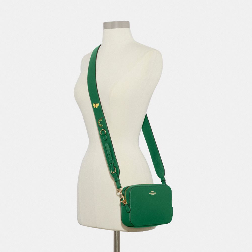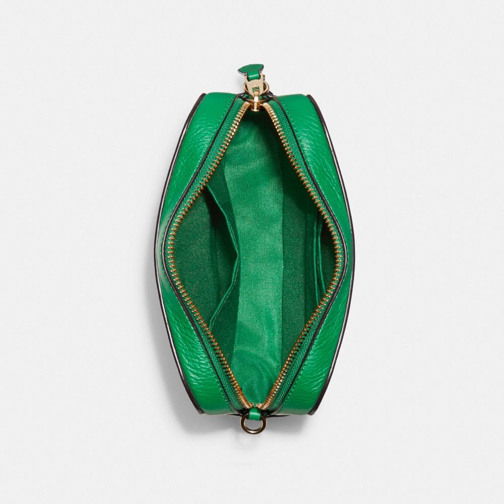 Refined pebble leather and smooth leather| Two credit card slots| Inside multifunction pocket| Zip closure, fabric lining| Outside open pocket| Adjustable strap with 23" drop for shoulder or crossbody wear| 7 1/4" (L) x 5 1/4" (H) x 2" (H)Style No. C8373