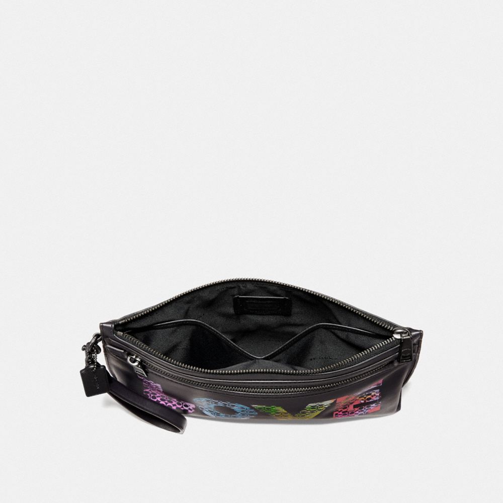 Glovetanned leather| Inside slip pocket| Zip-top closure, fabric lining| Outside zip pocket| Detachable wrist strap| 11 1/2" (L) x 8 1/4" (H) x 2 1/4" (W)| Art created by @whisbe in conjunction with @fillinglobal| Art created by @jasonnaylor in conjunction with @fillinglobal