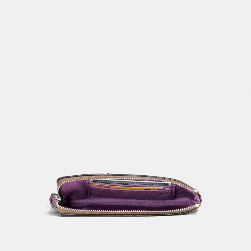 Signature coated canvas with crossgrain leather details| Two credit card slots| Zip-top closure, fabric lining| Wrist strap attached| 6 1/4" (L) x 4" (H) x 1/2" (W)| Fits an iPhone or Android
