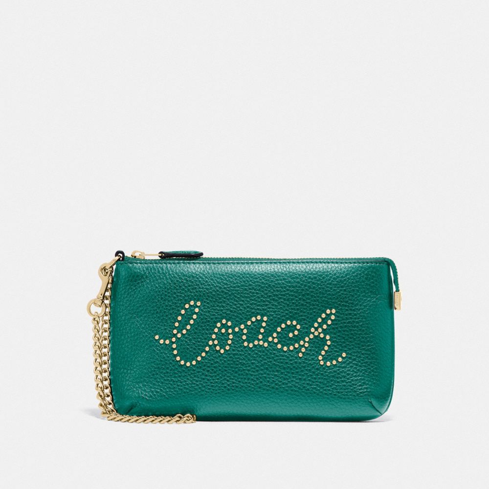 LARGE WRISTLET WITH STUDDED COACH SCRIPT
