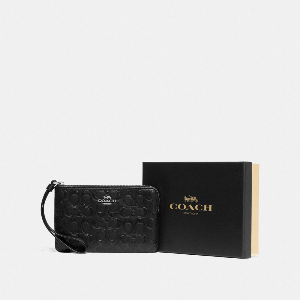 BOXED CORNER ZIP WRISTLET IN SIGNATURE LEATHER