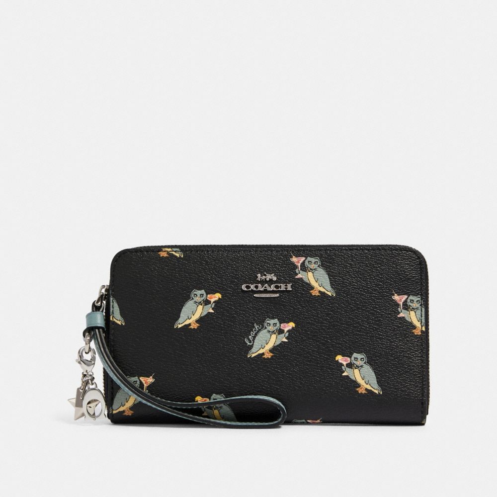 BOXED LARGE PHONE WALLET WITH PARTY OWL PRINT