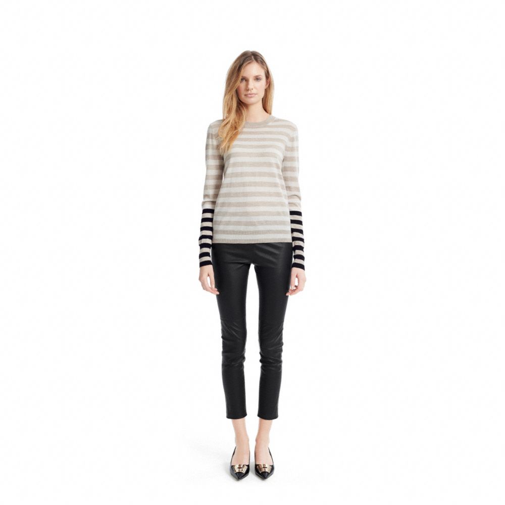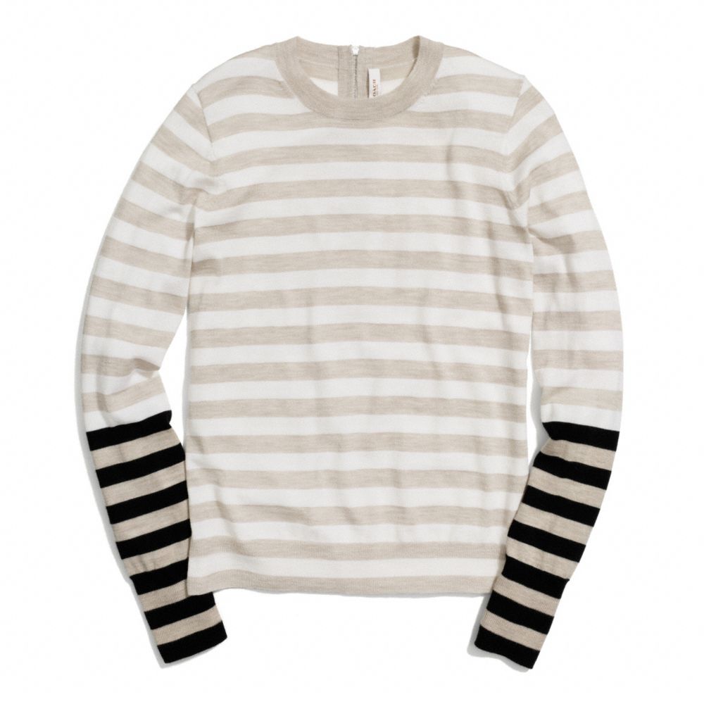 MERINO BAR STRIPE ZIP BACK CREWNECK SWEATER