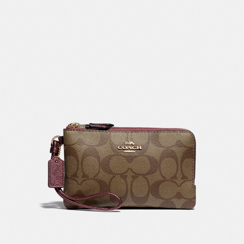 DOUBLE CORNER ZIP WRISTLET IN SIGNATURE CANVAS