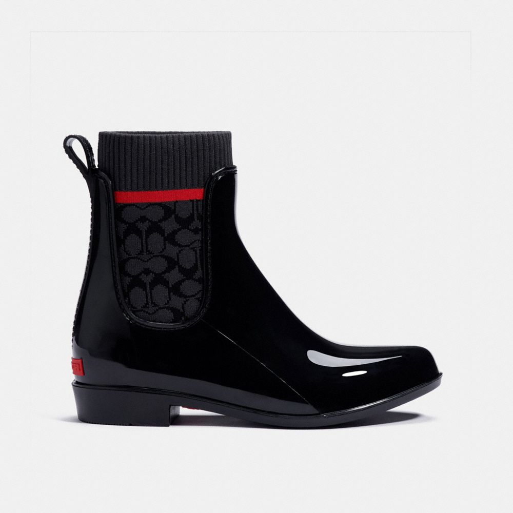 Signature coated canvas and knit upper| Fabric lining and footbed| Plastic outsole| Pull on| Shaft: 6 1/2" height| 1" heel